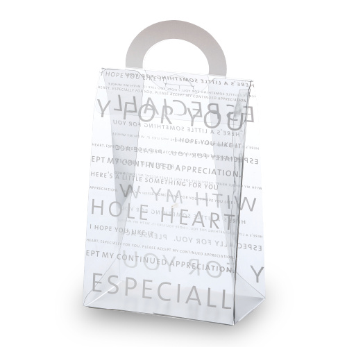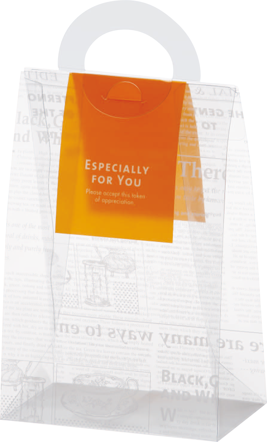 お菓子や雑貨など、何に使っても商品が映えること間違いなしの印象的なパッケージ。ハンドルが収納出来たり、マチを広げる機能も付いているので使いやすさも抜群のアイテムです。